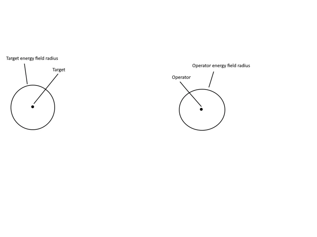 The left circle is used to represent the radius of the target energy field, The circle on the right is used to represent the radius of detector and operator energy field.