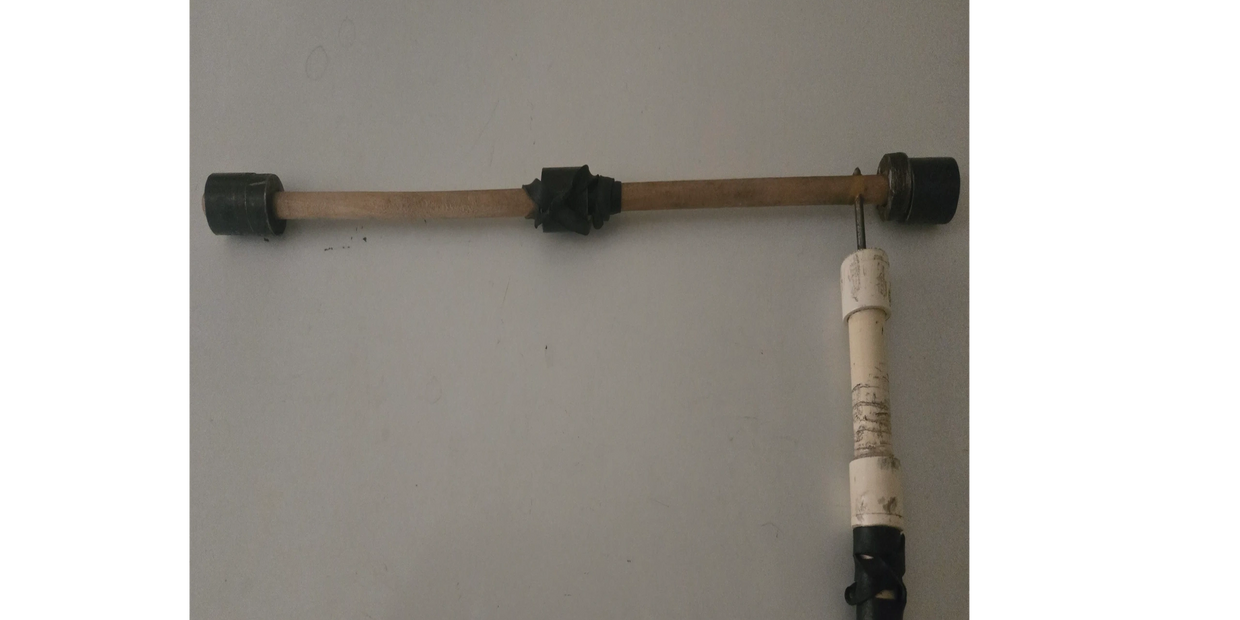 This is the latest prototype of the dowsing rods I have made. I have reduced the weight of the rod by using a 3/16" wooden dowel with a 15" length. The handle is made using a 3/8" plastic pipe with nylon flange bushings at each end. It seems to work better than previous rods and reduces the detection of the microscopic debris left by falling meteorites.